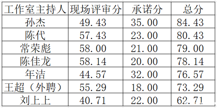 根据《关于遴选伟德国际集团艺术设计学院校企合作工作室的通告》,经资格审查和现场汇报答辩评审,现按照各工作室主持人从高分到低分的顺序依次排序,公示如下: