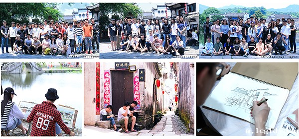 通过写生同学们对以黑瓦白墙为典型特征的皖南徽州古民居及徽州地区的历史、文化、风俗等方面的特点和背景有了新的认识,在建筑速写及建筑细节表现技法上有了质的飞跃,构图、取舍、透视等技法进步明显。在写生过程中,大家吃苦耐劳,互帮互助,自觉服从带队老师的安排,严格遵守实习纪律,尊重当地的民风民俗,表现了较高的整体素质和团结协作精神。白天,同学们在老师的带领下,参观明清古建筑群落、揣摩徽州建筑艺术的奥妙,绘制出一张张生动的速写;晚上,同学们聚集一处交流收获与感悟、聆听老师的专业点评。