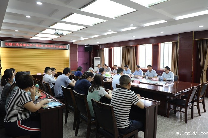 6月19日,“芜湖市家政服务类产教融合基地项目”签约启动仪式在学校第二会议室举行,芜湖市发改委、商务局、人社局、教育局等部门领导莅临出席。签约仪式由学校党委委员、总会计师王炜主持。