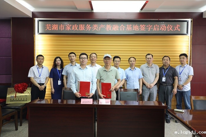 仪式最后,在各位与会领导嘉宾见证下,伟德国际集团与安徽窝窝家政服务有限公司主要领导在合作协议上共同签字,芜湖市家政服务类产教融合基地项目宣布正式启动。