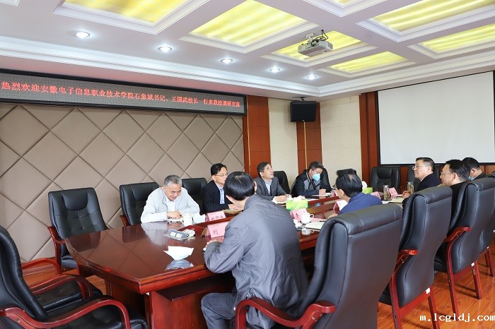 4月23日上午,安徽电子信息职业技术学院党委书记石象斌,党委副书记、校长王国武一行5人到我校,就地方技能型高水平大学建设工作进行调研交流,党委书记章顺来,党委副书记、校长李忠,党委委员、副校长郑承志等热情接待了到访客人。