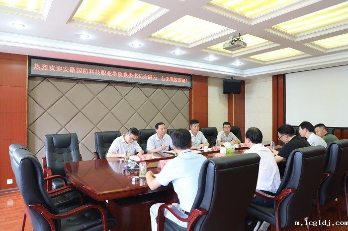 8月11日下午,安徽国防科技职业学院党委书记余嗣元一行5人来我校调研交流。我校党委书记章顺来,办公室、组织人事处等相关职能部门负责人热情接待了到访客人。