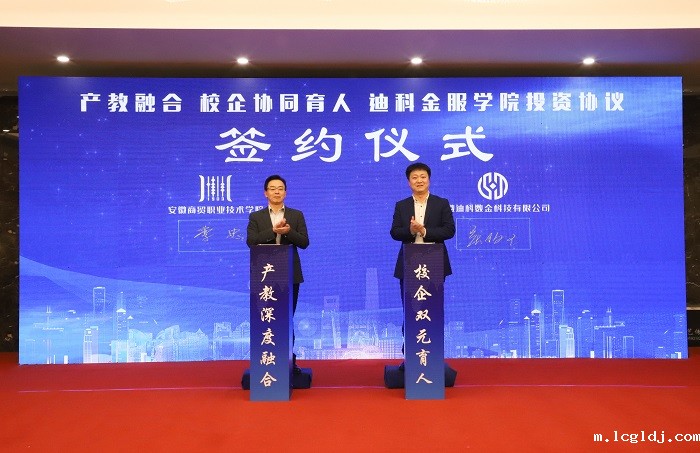 大会还进行了校企协同育人战略协议签订仪式。签约仪式上,李忠、吴福全分别代表双方签订合作协议。合作协议的签订,开启了安徽省高职院校举办公办体制下混合所有制二级学院实质性办学、“双人”育人的先河,推动了校企融合向深度发展,也是推进安徽省高职院校“双高”建设、综合改革试点的重要抓手。