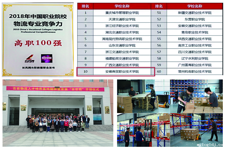 专业特色:本专业实行“三阶段递进”的工学结合人才培养模式,师资素质过硬,拥有央财支持的现代化物流实训中心和京东物流、顺丰物流、宝供物流等优质校外实习基地,校企合作开展“顺丰班”、“百世班”等订单式培养,人才培养质量高,学生职业发展潜力足。2016年物流管理专业获得安徽省物流协会颁发的“安徽省物流教育优秀单位”;2017年物流管理专业获批安徽省邮政管理局“安徽省快递人才培养基地”;2018年物流管理专业被评为中国职业院校物流专业竞争力高职100强,名列第十名;2019年物流管理专业获得“纪念改革40周年开放·安徽省优秀物流教育机构”称号。