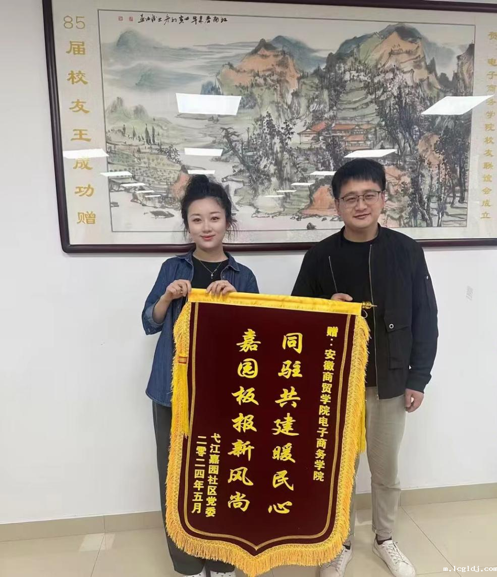 嘉园板报新风尚,同驻共建暖民心。5月8日,电子商务学院党总支与芜湖市弋江嘉园社区党委签订共建协议,随后,弋江嘉园社区党委书记关晖带着满满的感激之情来访学院,对学院师生每月为他们精心制作黑板报表示衷心感谢,并赠送一面锦旗以表谢意。