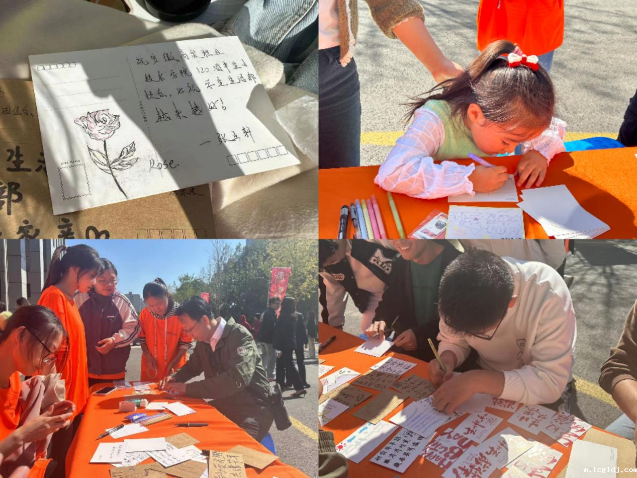 手写的温度就是心意最好的表达。在学院游园会体验区,一场以“迎校庆”为主题的涂鸦明信片活动吸引了众多校友。在5名全媒体广告策划与营销专业志愿者的引导下,一批批同学、校友热情地参与到涂鸦明信片的设计中,将内心对母校的情感融入笔触,方寸之间,寥寥数语,一抒思念之苦,一解挂念之心,一表感恩之情。活动结束后,由学院物流专业学生统一贴好邮票,将这份对母校的热爱邮寄至大江南北。