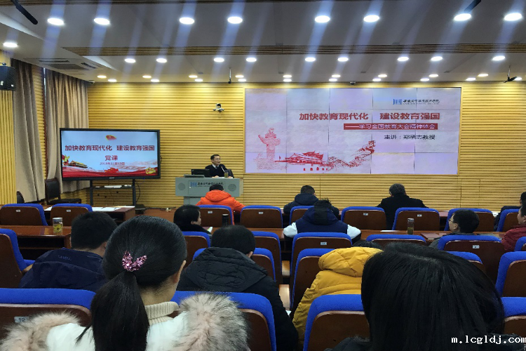 郑承志围绕“全国教育大会”,从深刻理解“全教会”召开的时代背景、准确把握“全教会”精神、高质量推进新时代职业教育的改革发展三个方面进行详细讲解。郑承志表示,认真学习习近平总书记关于教育重要论述的核心思想(“九个坚持”),掌握它科学内涵和精神实质,可以更好地武装头脑、指导实践、推动工作。同时他强调,教育的根本任务是培养德智体美劳全面发展的社会主义的建设者和接班人。