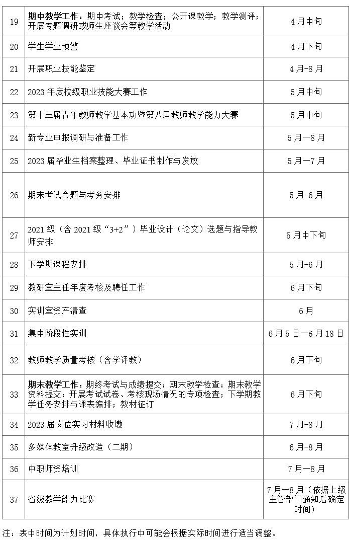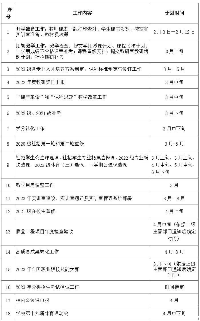 2022-2023学年度第二学期教学工作计划安排表
