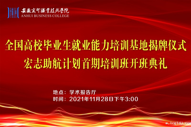 11月28日下午,全国高校毕业生就业能力培训基地揭牌仪式暨“宏志助航计划”首期培训班开班典礼在我校学术报告厅举行。安徽省大中专就业指导中心主任袁江林、校党委副书记、校长李忠,省大中专毕业生就业指导中心信息部主任...