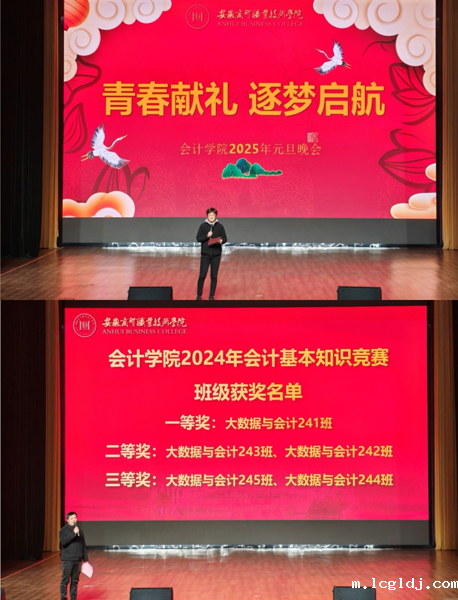 12月25日晚,会计学院“青春献礼·逐梦启航”元旦晚会在行知大礼堂隆重举行。学院师生欢聚一堂,在欢声笑语中迎接新年的到来。
