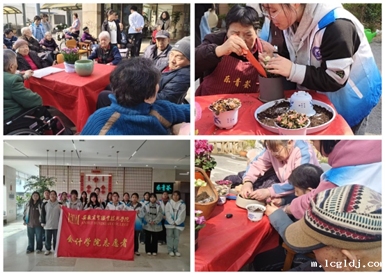 3月11日,植树节前夕,会计学院30余名志愿者走进乐青荟养老院,开展“植树添绿,守护未来”主题活动。青年学子与老人们结成对子,挥锹培土、扶苗浇水,在庭院中共同栽种下20余棵树苗。80余岁的李奶奶轻抚树苗动情地说:“这些树就像孩子们带来的希望,等这些树木长大了,你们可要常回来看看!”植树结束后,志愿者们还通过文艺表演、聊天互动等形式陪伴老人,让欢声笑语充盈春日的庭院。