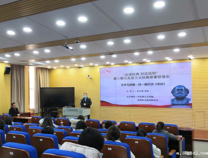 为深入学习党的十九届六中全会精神,从党的百年奋斗中汲取前行力量,不断拓展党史学习教育成果,近日,马克思主义学院(思想政治教育研究所)举办了“品读经典对话信仰”第八期马克思主义经典原著研读会暨党的十九届六中全会精神专题学术讲座。马克思主义学院副教授朱中原作了《文本与旨趣:挂一漏万谈<决议>》的专题讲座,马克思主义学院全体思政课教师、思想政治教育研究所全体成员以及部分学生代表参加聆听了讲座,讲座由马克思主义学院院长杨卫宏主持。