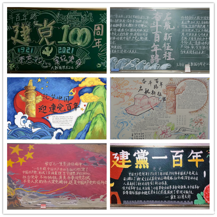 活动前期,为营造举国共庆百年华诞、齐心协力开创新局的浓厚氛围,学校组织各班团组织发挥创意,以主题创作的形式庆祝建党百年。同学们利用课余时间,制作出一份份饱含爱党爱国情感的黑板报、手抄报作品。此外,各班团组织还通过“红心向党铸辉煌”快闪、我与团旗合影等活动,以视频、图片形式记录青春印象,献礼建党百年。一批富有创意的快闪视频及照片充分展示了我校青年团员一心向党,朝气蓬勃的青春风貌。