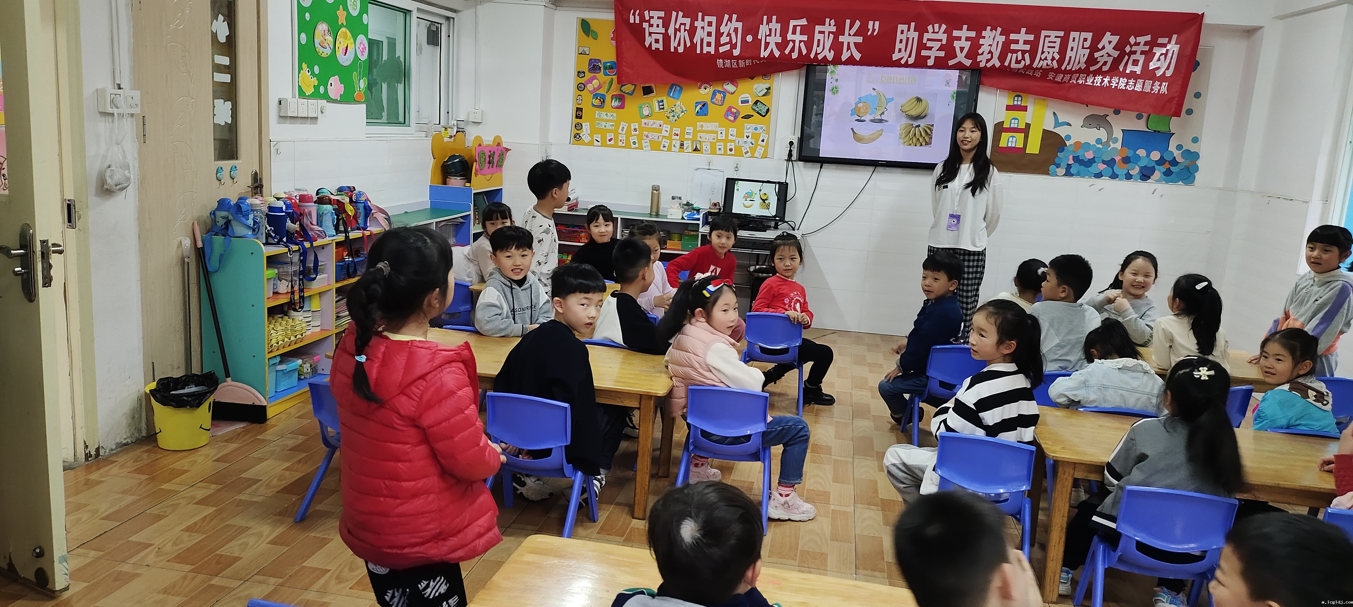 为强化志愿服务精神,支持和帮助儿童健康成长、全面发展,进一步提高幼儿英语学习兴趣。4月27日我校英语协会“雅典娜”志愿者小分队走进镜湖区乐成幼儿园,携手芜湖市镜湖区北门口社区党群服务中心开展以英语教学为主题的助学支教志愿服务活动。