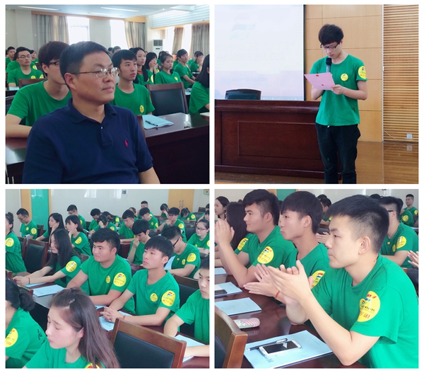 朱光应及全体志愿者共同观看了我院2015年暑期“三下乡”总结视频,坚定了本年度志愿者们投身社会实践大课堂、展现青春风采、积极传递正能量的决心。志愿者汪洋代表参加本次暑期“三下乡”社会实践活动的全体同学发言,表示将珍惜实践机会,虚心好学,勇于担当,在实践中放飞青春梦想。