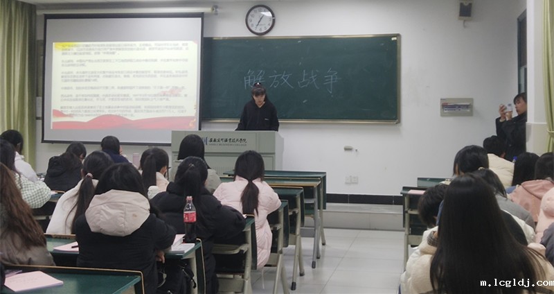 活动中,团支书每周晚自习都带领班级同学进行“四史”学习,通过ppt、短视频、党史答题等方式带领同学们深入学习了中国共产党的光辉历史。为考察同学们学习“四史”的效果,班级每周开展学习心得分享会,同学们分别对抗日战争、解放战争、抗美援朝等经典历史时期展开分组讨论和汇报,展示小组成员学习“四史”的收获和感受。