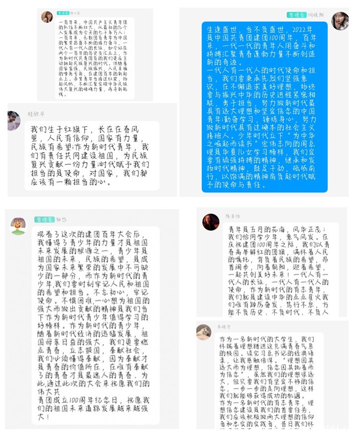 2022年,中国共产主义青年团迎来了100周年的纪念日,在庆祝中国共产主义青年团成立100周年的大会上,习近平总书记发表了重要讲话,为深入学习讲话精神,现代文秘212班团支部开展了以观看大会直播和分享讨论为形式的纪念活动。