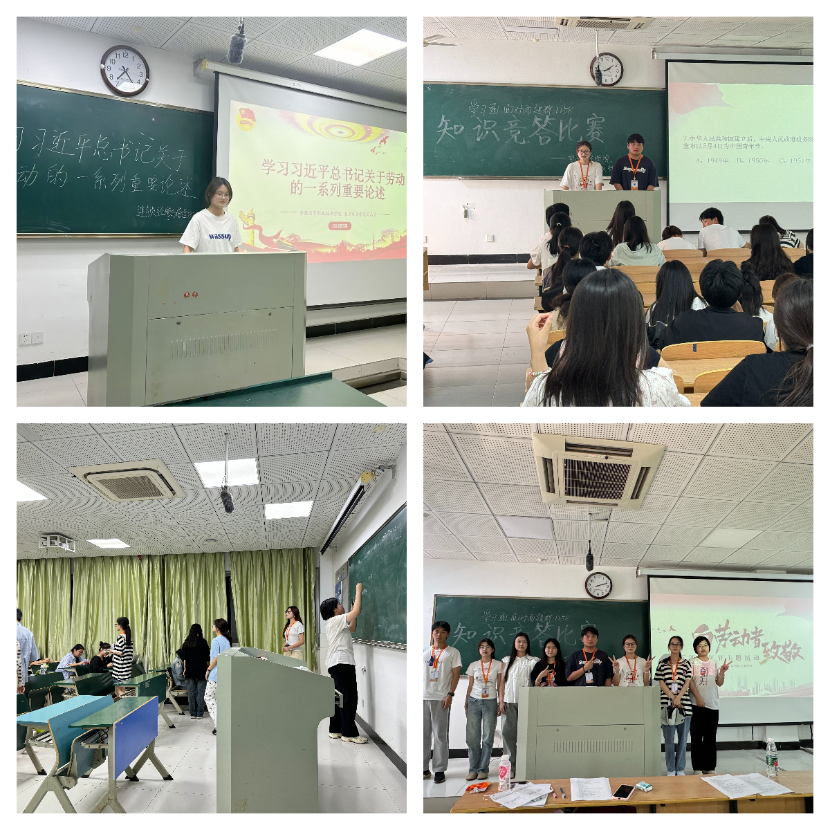 传承劳动精神,发挥榜样作用。近日,电子商务学院结合青年学生特点,通过举办劳动知识竞答活动,深入学习贯彻习近平总书记关于劳动的重要论述。活动现场,参赛选手聚精会神地聆听着主持人的问题,题目内容涵盖了劳动法律法规、劳动安全知识、劳动技能等多个方面,旨在检验同学们对劳动知识的掌握程度。比赛过程中,有的选手迅速抢答,准确无误;有的选手则陷入沉思,仔细斟酌每一个选项。现场观众也跟随比赛节奏,时而紧张地屏住呼吸,时而为选手的精彩表现鼓掌喝彩。经过激烈的角逐,最终产生了优胜队伍和最佳个人奖。相信在未来的学习和生活中,同学们将更加珍惜劳动成果,弘扬劳动精神,积极参与劳动实践,用实际行动践行“劳动最光荣、劳动最崇高、劳动最伟大、劳动最美丽”的理念。