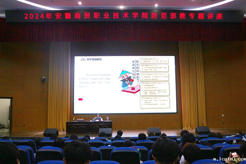本次活动邀请芜湖市委政法委反邪教协调科科长朱婷婷作防范邪教专题讲座,约500名师生聆听讲座。朱婷婷通过视频、图片等方式,结合高校学生的真实案例,向师生们阐述了邪教的本质、特点、危害以及防范策略,为师生们提供了宝贵的反邪教知识。