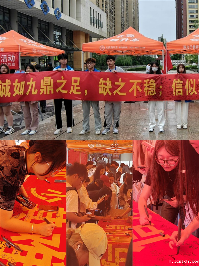 诚实守信是中华民族的传统美德,是社会主义核心价值观的重要内容,也是青年大学生成长成才的必备品质。为了使同学们在生活学习中自觉养成重信誉、讲诚信的良好习惯,6月6日,会计学院以“诚如九鼎之足,缺之不稳;信似驷马之蹄,少其难行”为主题成功开展了诚信主题宣传活动。活动现场,工作人员一边通过悬挂宣传条幅的形式向同学们宣传、讲解诚信的重要性和含义,一边引导同学们在横幅上签名,表达自己对诚信的承诺和坚守,希望同学们传承文明,践行美德,弘扬社会正气和时代正能量,从身边小事做起,积极投身诚信实践,争做诚信大学生。