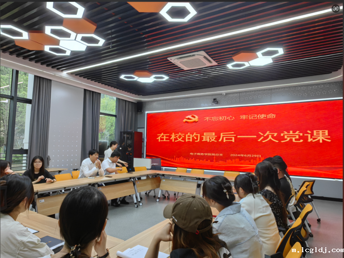 正逢就业之际,学院为电商学院毕业生上了最后一堂党课。魏力表达了对各位即将毕业的学生的期望,关心了他们的未来去向,强调了在今后工作学习中要保持廉洁从业、学无止境的态度。