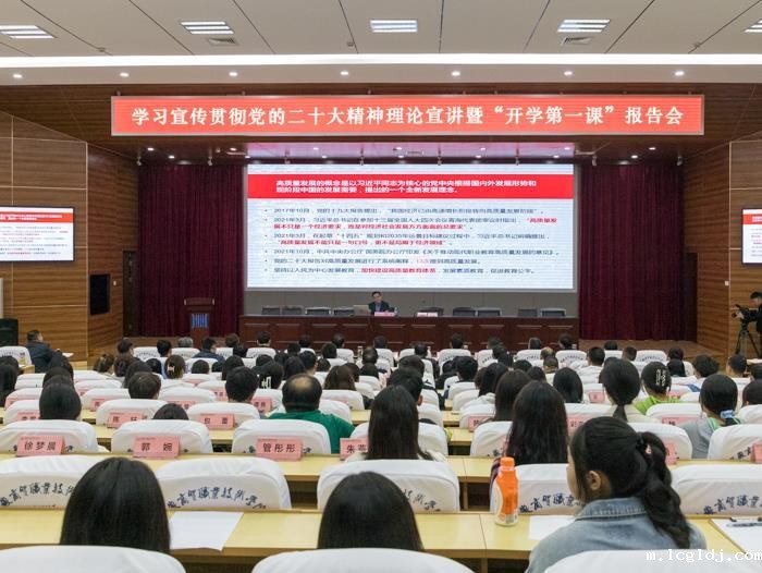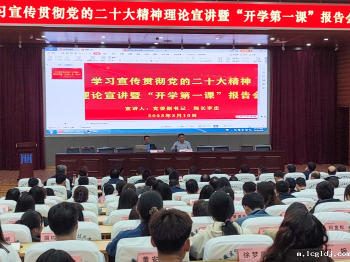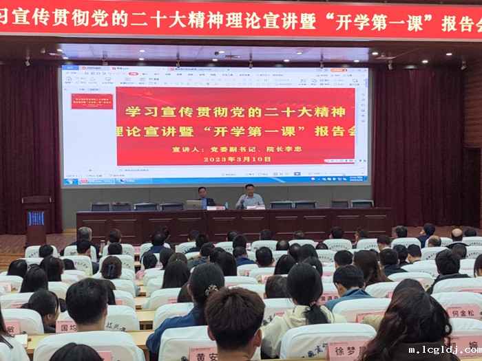 为深入学习宣传贯彻党的二十大精神,赋能学校高质量发展,3月10日下午,学校党委副书记、院长李忠以《推进现代职业教育高质量发展的思考》为题,为校中层及以上干部、教研室主任及学生入党积极分子讲授“开学第一课”。报告会由校党委委员、纪委书记黄继胜主持。