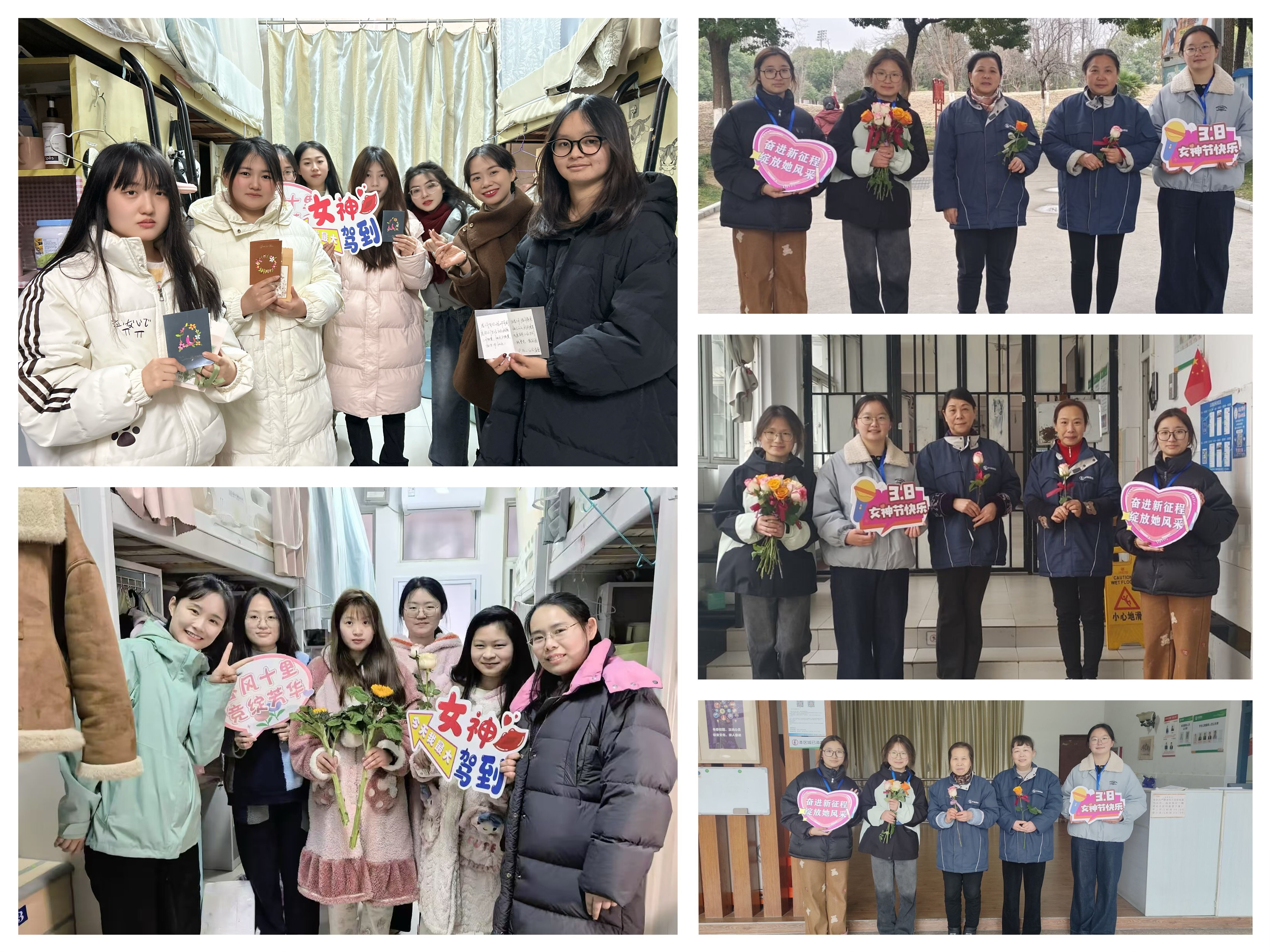 值此妇女节之际,学校尤为关心学生们的实际需求。辅导员及工会工作人员深入女生宿舍,与同学们热情交谈,倾听她们的心声与诉求。同时,在学校的组织安排下,女学生们向宿管阿姨赠送鲜花与盲盒,表达爱意与感激。
