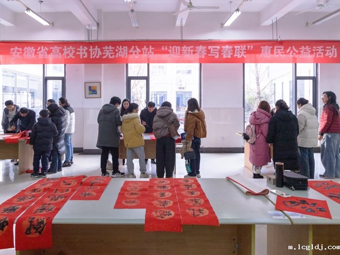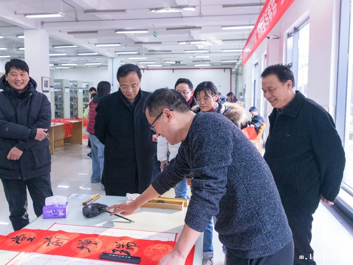 为弘扬传统文化,共庆新春佳节,元月8日下午,在安徽省高校书法家协会芜湖分站的大力支持下,校工会联合图书馆共同举办“墨香送福”迎新春写春联活动。庄华峰、姚金中、胡建平、司福明、朱吉玉、许美珏等书法家受邀挥墨,在图书馆一楼书库为全体教职工写春联及“福”字。党委委员、纪委书记黄继胜,党委委员、副院长汤飚现场走访观摩。