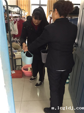 11栋学生公寓101室一名女生因疾病行动不便,生活不能自理,宿管员孙俊萍、曹琴玉两位同志得知这一情况后,心中顿时有了想法,能为这个同学做点什么?!于是,尽管她们每天十分忙碌,仍然每天帮助该同学换洗衣物,想同学之所想、急同学之所急,尽心尽责,事无巨细,用真心、真情做好生活服务。
