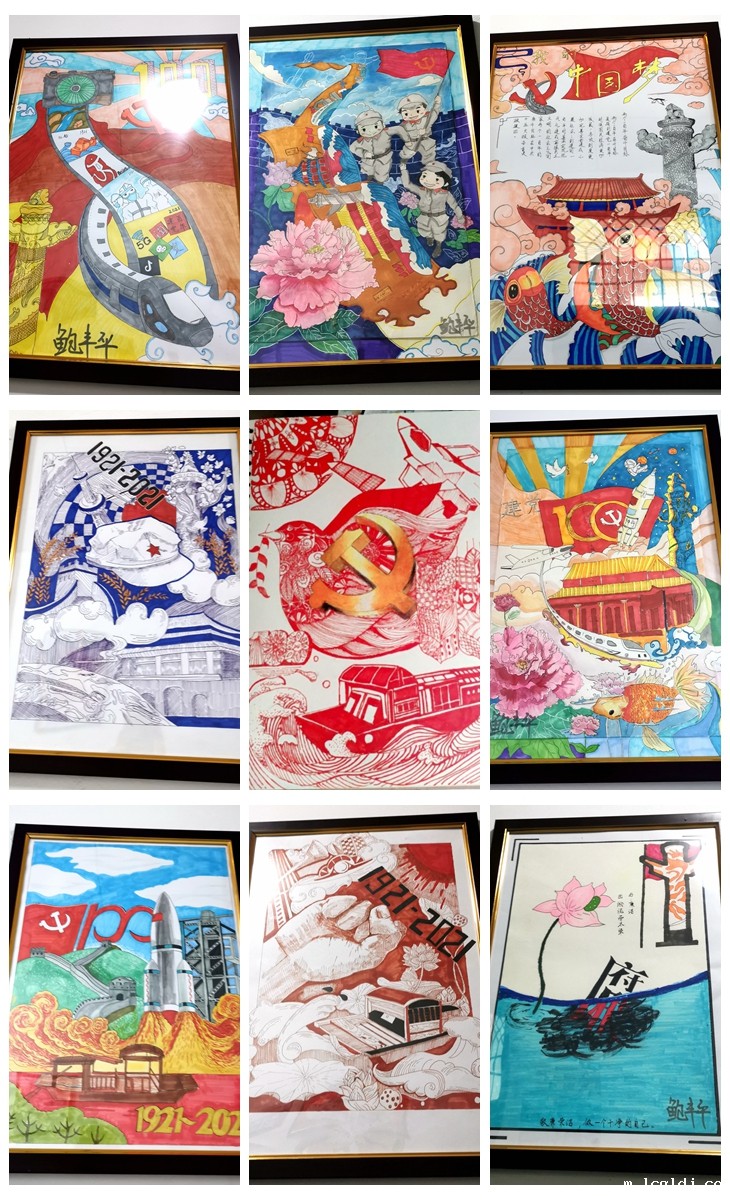 因为热爱,所以坚持。虽然从未参加过绘画培训班,但鲍丰华热爱绘画,渴望通过美妙的画笔画出梦想,画出未来,画出自己眼中的美丽世界。说起作品的来由,他说,有一次在团总支办公室值班时,他利用闲暇时间写写画画,徐影老师看到后夸奖他画得好,并买了很多专业的画笔和画纸送给他,鼓励他画自己想画的。“画什么呢?”鲍丰华想到今年是建党100周年,可以用绘画的形式弘扬党的光辉历程和丰功伟绩,于是就有了这次画展。
