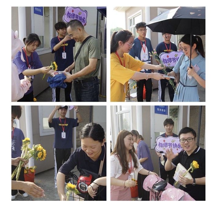 春风化雨守初心,润物无声育桃李,从9月10日清晨的第一缕芬芳开始,我们迎来了第37个教师节。当日,同学们早早到达学校门口,为老师们精心准备了鲜花和精美的礼品。校园内,大家手举温馨的手牌,以各种方式向老师表达祝福与感谢,向老师表示诚挚的敬意。一声声“老师,祝您教师节快乐!”让进校门的老师们脸上洋溢出幸福的笑容。学校创业的学生也根据自身的创业成果为老师准备了小礼品,为恩师送上祝福。此外,后勤管理处还为老师们精心准备了节日午餐。整个校园弥漫着温馨的节日气氛。