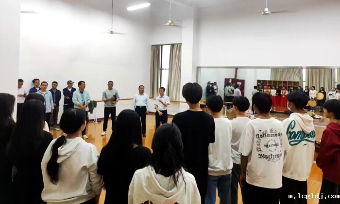 中秋国庆佳节之际,10月4日下午,校党委副书记王炜以及校庆晚会工作组的同志们来到体育馆,看望假期留校,正在紧张排练节目的80多名参演学生。