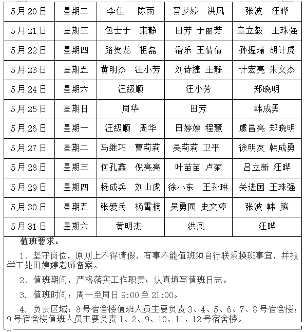 2025年5月“一站式”学生社区值班安排