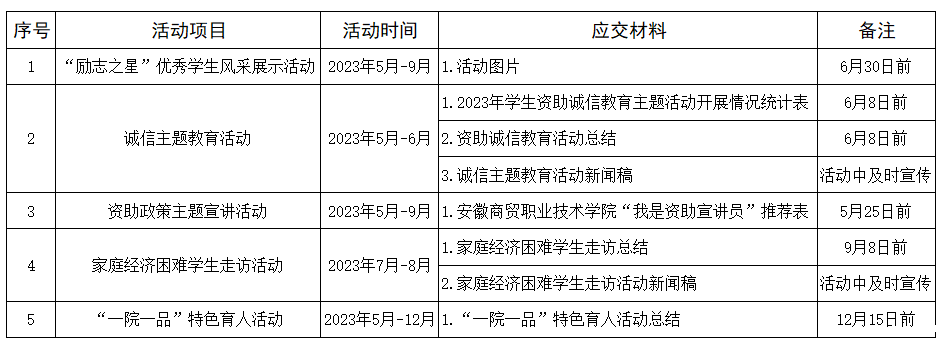 2023年资助育人活动开展计划表