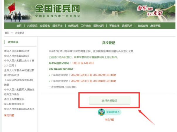 2.1登录全国征兵网,选择左上角“兵役登记”