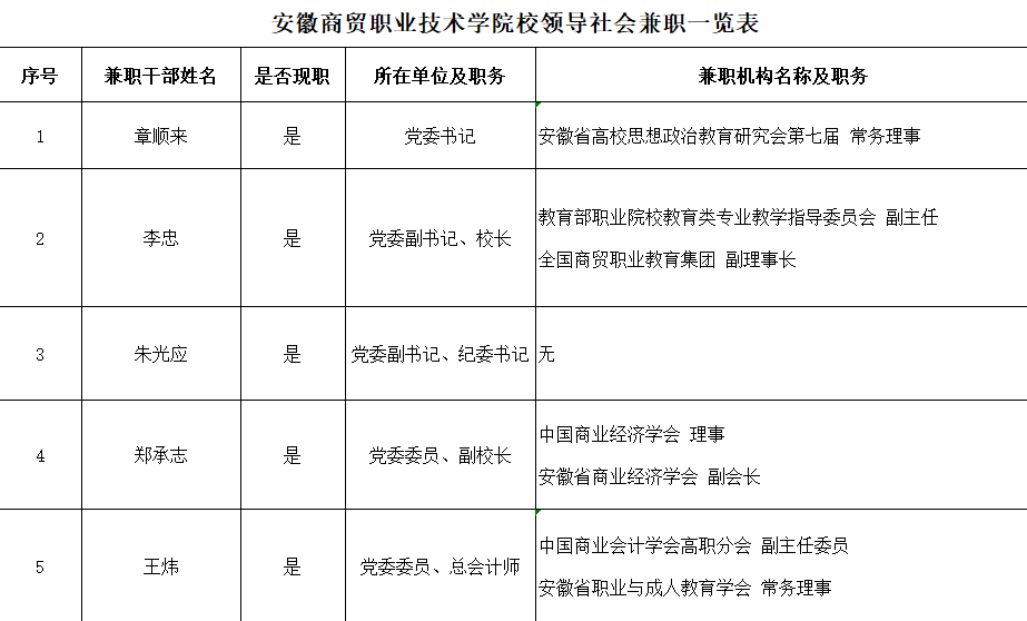 学校领导干部社会兼职情况