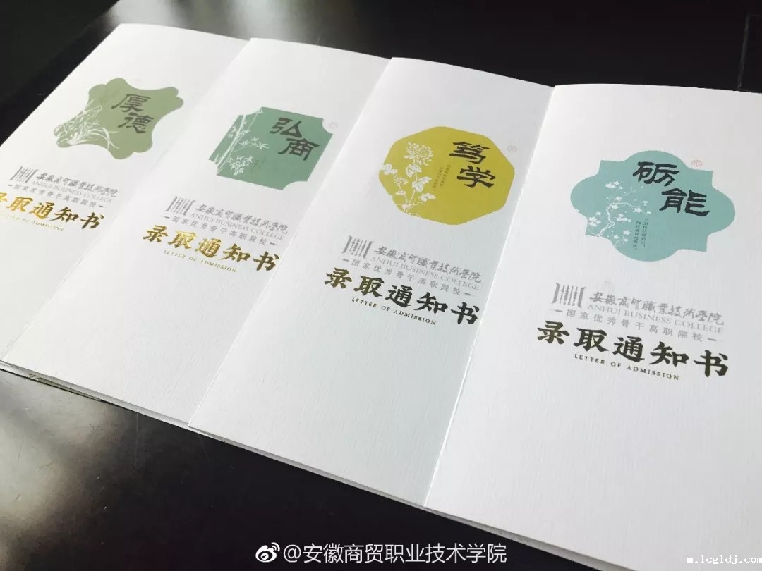 为了激发新生探索欲,提高录取通知书的收藏价值,充分体现学校“百年BETVlCTOR手机登录,立德树人”的办学理念和校园文化,招生就业处会同艺术设计系设计制作新版通知书,新版录取通知书在直接体现学校视觉形象的基础上,将校训“厚德、弘商、笃学、砺能”与“梅兰竹菊”有机融合,并分别精选箴言名句寄语新生,让新生直观形象地感知校园文化。录取通知书共计四个版本,新生将随机收到其中的一种,在激发新生探索欲的同时,也寄寓了学校对新生的希冀和期盼,更加展示了我校厚重的文化底蕴和独特的人文情怀。新版通知书的启用在新老生中引起讨论热潮,一度成为网红,为数不少的在校学生甚至毕业生纷纷申请收藏。