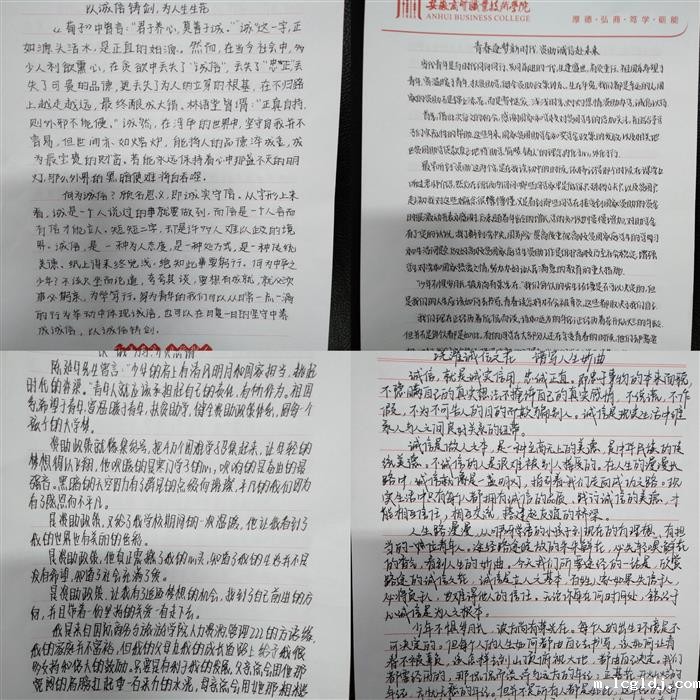 “人而无信,不知其可也”,为了进一步加深诚信体系建设,践行“三全育人”理念,形成“人人懂征信,人人讲诚信”良好风尚,国际商务与旅游学院组织开展“诚信树人,励志人生”主题征文活动,经过班级遴选,共收到二十余篇征文,同学们纷纷通过文章,抒发自立诚信和感恩祖国、感恩学校心声。